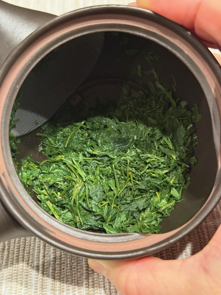新茶を求め今年も嬉野の松永緑園さんに先日行ってきました。今年は3月31日に寒の戻りがありお茶の一部が霜焼けしてしまったようです。本来なら萌葱色の新茶の畝がストライプ状の色なのがお分かりいただけるかと思います。霜害を防ぐ、背の高い首振り扇風機のようなもので地表と上の空気を掻き回すのですが、風が当たらなかった側が霜焼けしてしまっています。心が痛む写真です。今年の気象は新茶の始まりの種子島も八女も嬉野も例年より摘み取りが1週間ほど遅れたようです。早い時期の被害はあったものの、その後のお茶は美味しい。シングルオリジンの日本茶をいろいろ作ってらっしゃる松永さんの今年の「つゆひかり」は驚く美味しさでした。ふくよかな味わいはもちろん、品種の香り+新茶の青々しい香り、2煎淹れた後の急須にしばらく鼻を突っ込みアロマ効果を頂きました。瑞々しい野菜のようでもあり、茶殻はおひたしにして美味しく頂戴しました。