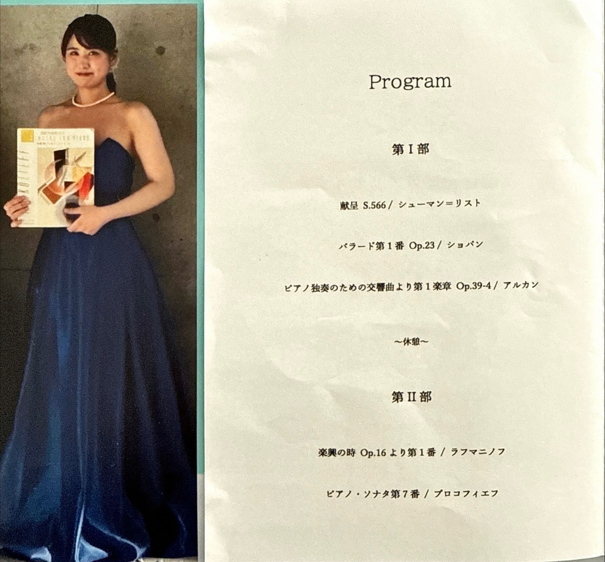先週の土曜日、佐賀市の浪漫座で開かれたピアノリサイタルに行って参りました。ピアニストは音大卒業を控えた大学4年生。彼女のレッスンをさせて頂いていた中学生の頃、教育連盟のコンクールで北部九州代表となり東京での全国大会に同行させてもらった思い出がある生徒さんです。彼女を通して全国大会のレベルの高さを垣間見る貴重な経験をさせてもらったと同時に、砂が水を吸収するような伸び盛りの生徒さんをお預かりする責任の重さを痛感させてくれました。その後は私の師匠である先生に託し更に力をつけていかれました。ピアノの手解きをし基礎を教えてくださった最初の先生のご指導も素晴らしかったのだと思います。満席の会場。彼女の思いが詰まったプログラム。ご自身による解説を交えての初めてのリサイタル。大成功だったと思います。今後益々のご活躍を心からお祈り申し上げます。